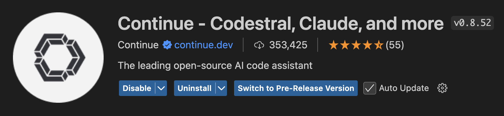 Now, you can start using your own AI coding assistant. If you having issues with the extension, please check out Continue.dev Troubleshooting page.